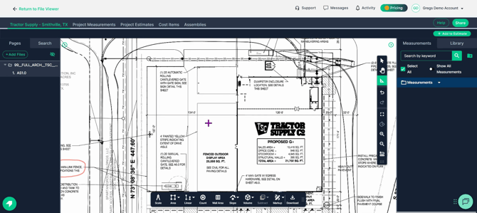 Step 9: Measure fence perimeter, skipping gates. Start at the building and click once to begin measuring.