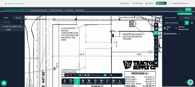 Step 7: Begin measuring with the Linear Line tool. Go to the toolbar, click Linear, then select Line.