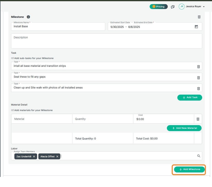 - Each Milestone can be assigned to one or more Team members. Assigning a team member will add this job to their Jobs in their Field App.