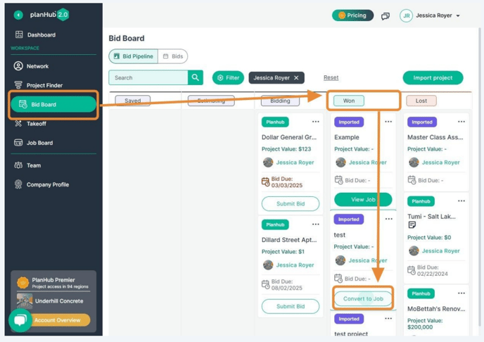 PlanHubs Subcontractor Jobs feature is a tool you can add to your subscription. This article will walk you through how to turn a won project on your Bid Board into a Job.