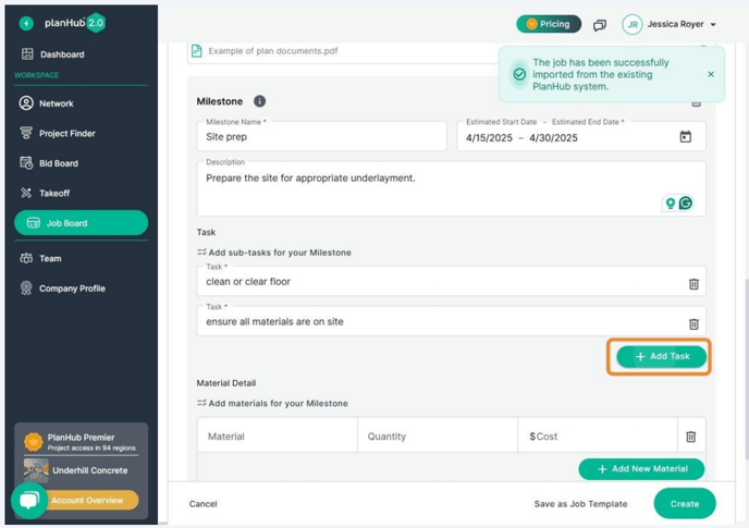 The Job Board is best utilized when your team in the field is using the PlanHub Field App to log their labor, upload documents, and mark tasks as completed.