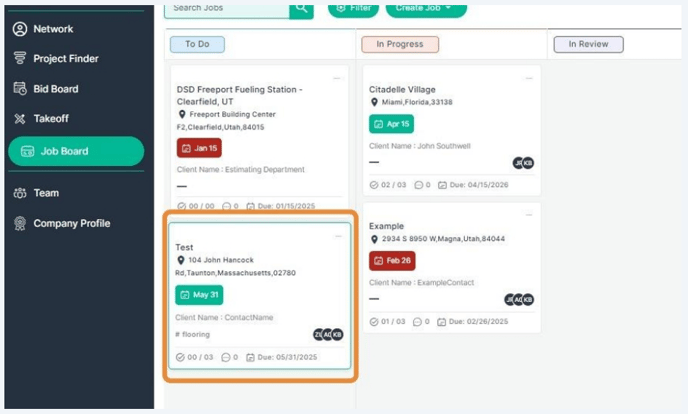 The Job has now been added to your Jobs Board, and you can click on it to start tracking, updating, and connecting with the team members you assigned to the Job.